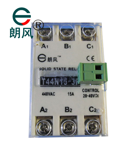 朗风牌T44系列无触点接触器适用于三相电动机负载,其中10A-40A为双向可控硅输出,50A-60A为单向可控硅反并联(增强型)输出,大于60A的采用IR可控硅芯片,耐压大于1600V(特定)。输入控制N型(18-36VA/DC),A型交流控制(90V-280VAX)。
