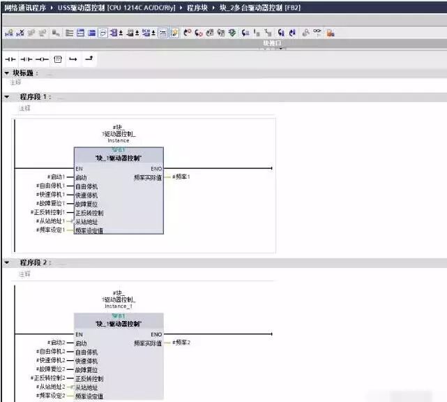 使用S7-1200/1500的USS程序块,用户无需详细了解USS协议格式,通过简单的调用,即可完成USS通讯,实现对驱动器的控制。
