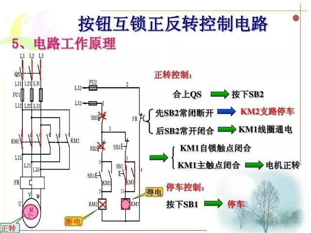 5、按钮互锁正反转控制电路工作原理。