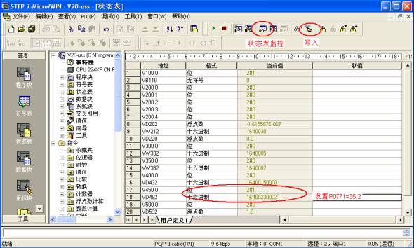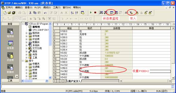 (2)只要给V350.0一个上升沿,就完成一次P1000参数的写操作。