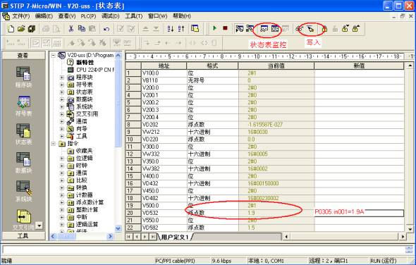 (1)读参数P0305.In001,其数据类型为浮点数。
