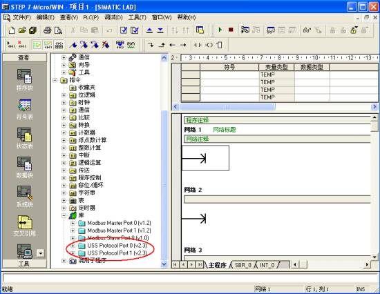 2、在使用MicroWin software 创建项目之前,确认USS库文件已经安装:
