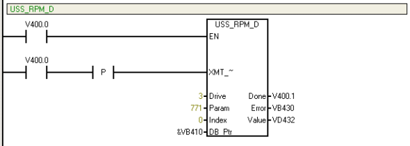 3.9.1举例:使用USS_RPM_D读取参数P0771.In000的值;