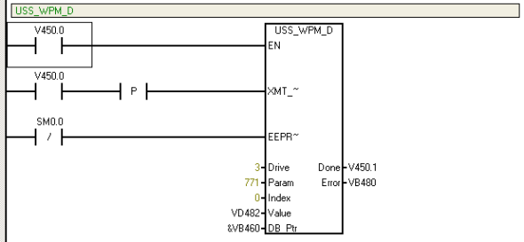 (2)只要给V450.0一个上升沿,就完成一次P771参数的写操作。