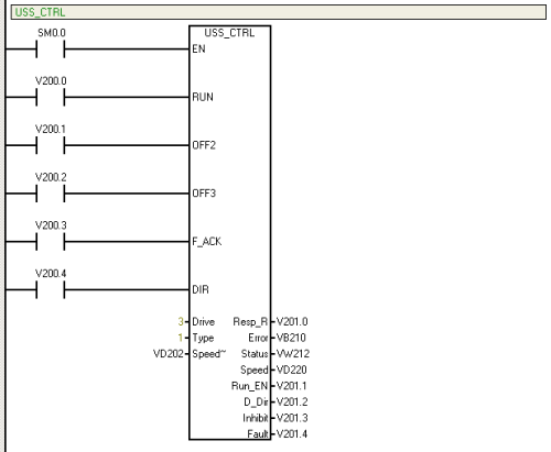 3.5 使用USS协议的初始化模块初始化S7-200的PORT0端口: