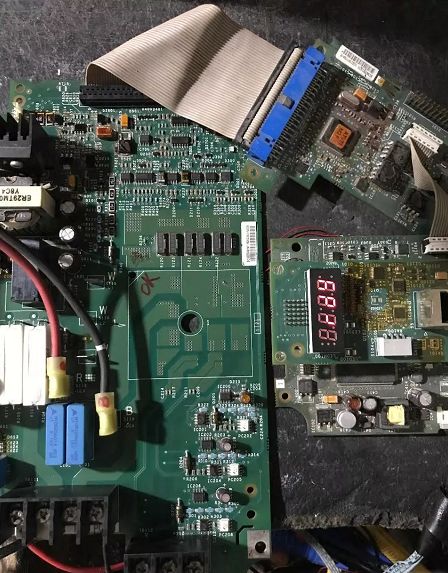 查看此故障代码意为错误的设置,在故障修复措施说明中说可以进行恢复出厂设置试试,于是恢复出厂设置,恢复后CFF不报了,但是显示“INF1”,查此代码意为额定功率错误,难道是存储器芯片中的数据丢失了?于是拷贝数据,故障排除。