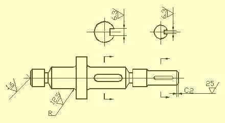 如图中所示的表面粗糙度为Ra6.3的右轴肩,被选为长度方向的主要尺寸基准