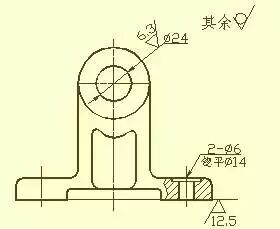 这类零件一般有拨叉、连杆、支座等零件。由于它们的加工位置多变,在选择主视图时,主要考虑工作位置和形状特征。对其它视图的选择,常常需要两个或两个以上的基本视图,并且还要用适当的局部视图、断面图等表达方法来表达零件的局部结构。踏脚座零件图中所示视图选择表达方案精练、清晰对于表达轴承和肋的宽度来说,右视图