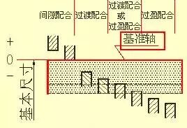 基轴制--是指基本偏差为一定的轴的公差带与不同基本偏差的孔的公差带形成各种配合的一种制度。见下图。基轴制的轴称为基准轴,其基本偏差代号为h,其上偏差为零。