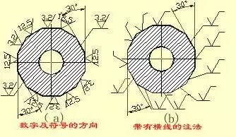 2)) 表面粗糙度代号中数字及符号的方向必须按规定标注。