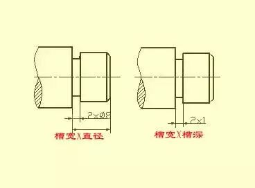 在零件切削加工时,为了便于退出刀具及保证装配时相关零件的接触面靠紧,在被加工表面台阶处应预先加工出退刀槽或砂轮越程槽。车削外圆时的退刀槽,其尺寸一般可按"槽宽×直径"