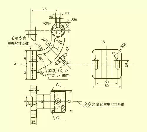 在标注尺寸方面,通常选用设计上要求的轴线