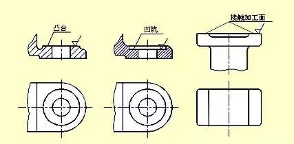 零件上与其他零件的接触面,一般都要加工。为了减少加工面积,并保证零件表面之间有良好的接触,常常在铸件上设计出凸台,凹坑。螺栓连接的支撑面凸台
